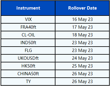 CFD Rollover Notice For May
