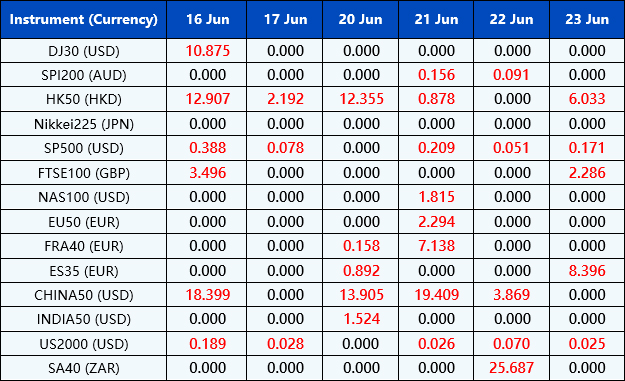 Please be advised that the dividends of the following index CFDs will be adjusted by upcoming ex-dividend dates. The comment for trading index CFDs will be in the following format “Div& <Product Name>&<Net Volume>”which show in the balance after the close of the day before the dividend payment date.