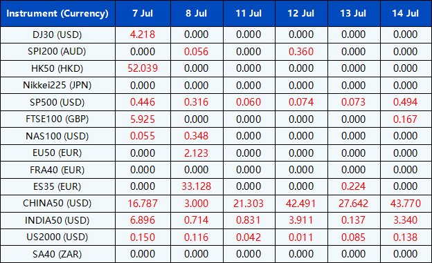 Please be advised that the dividends of the following index CFDs will be adjusted by upcoming ex-dividend dates. The comment for trading index CFDs will be in the following format “Div& <Product Name>&<Net Volume>”which show in the balance after the close of the day before the dividend payment date.