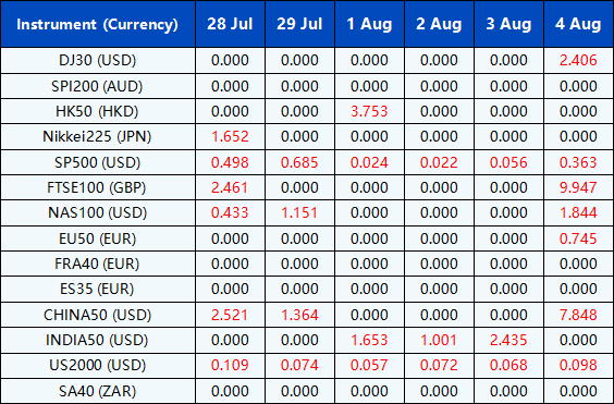 Please be advised that the dividends of the following index CFDs will be adjusted by upcoming ex-dividend dates. The comment for trading index CFDs will be in the following format “Div&<Product Name>&<Net Volume>” which show in the balance after the close of the day before the dividend payment date.