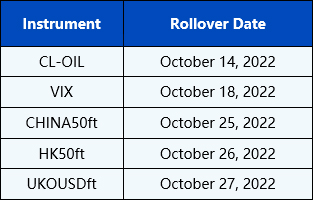 Please be advised that the following CFD instruments will be automatically rolled over as per the dates in the table below. As there can be a pricing difference between old and new futures contracts, we recommend clients to monitor their positions closely and manage positions accordingly.