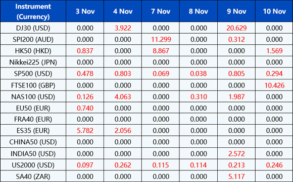 Please be advised that the dividends of the following index CFDs will be adjusted by upcoming ex-dividend dates. The comment for trading index CFDs will be in the following format “Div&<Product Name>&<Net Volume>” which show in the balance after the close of the day before the dividend payment date.