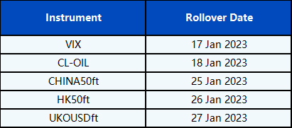Please be advised that the following CFD instruments will be automatically rolled over as per the dates in the table below. As there can be a pricing difference between old and new futures contracts, we recommend clients to monitor their positions closely and manage positions accordingly.