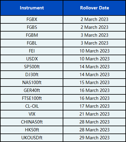 CFD Rollover Notice for March