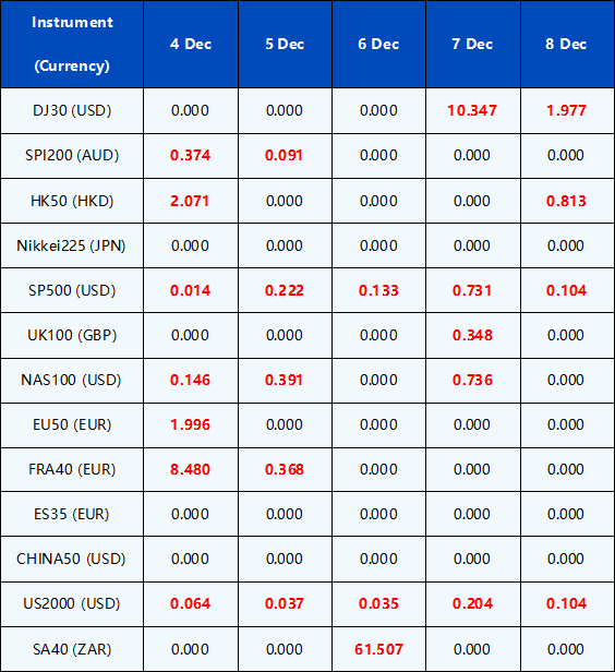 Please note the above data are subject to changes. Please refer to MT4/MT5 for details.