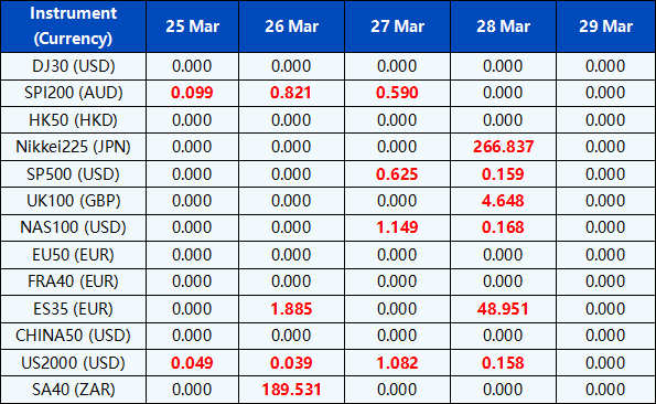 Please note the above data are subject to changes. Please refer to MT4/MT5 for details.