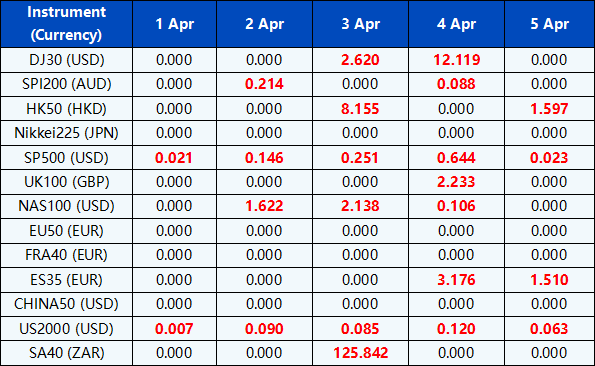 Please note the above data are subject to changes. Please refer to MT4/MT5 for details.