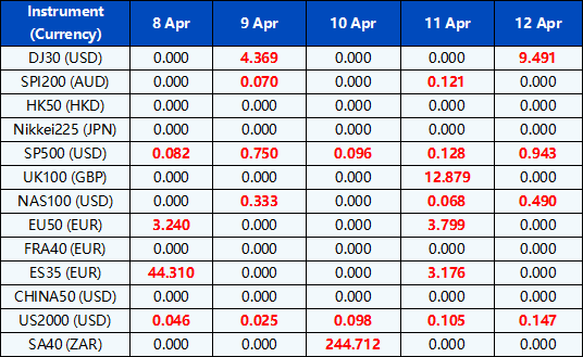 Please note the above data are subject to changes. Please refer to MT4/MT5 for details.