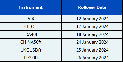 CFD Rollover Notice for January
